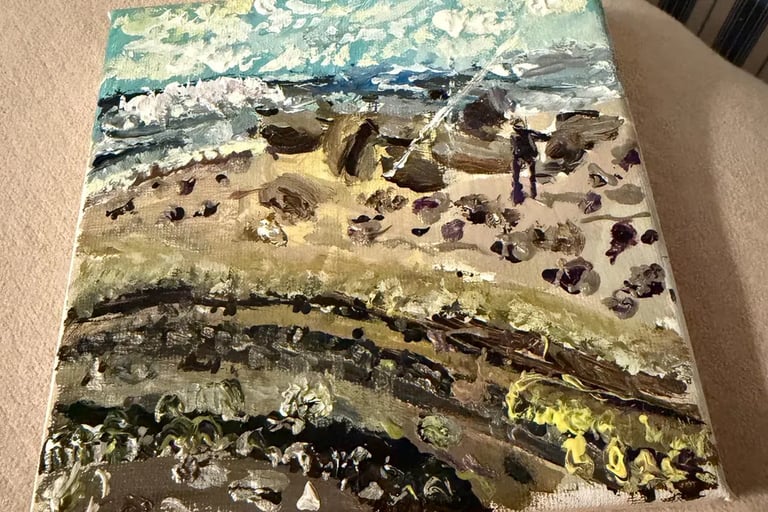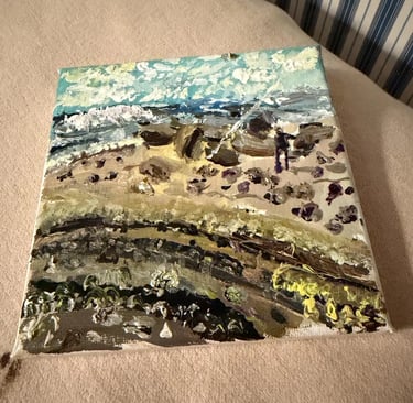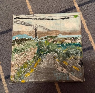 A painting of a a scenic road and scenery in County Clare, Ireland. This is along road N67.