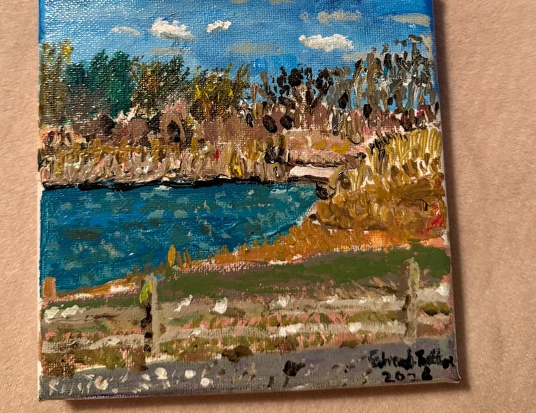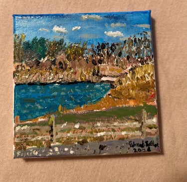 Hook Pond is in East Hampton, New York. This is on the east end of Long Island which is about 100 miles away from New York CIty. This painting illustrates the nature surrounding it along with a bridge